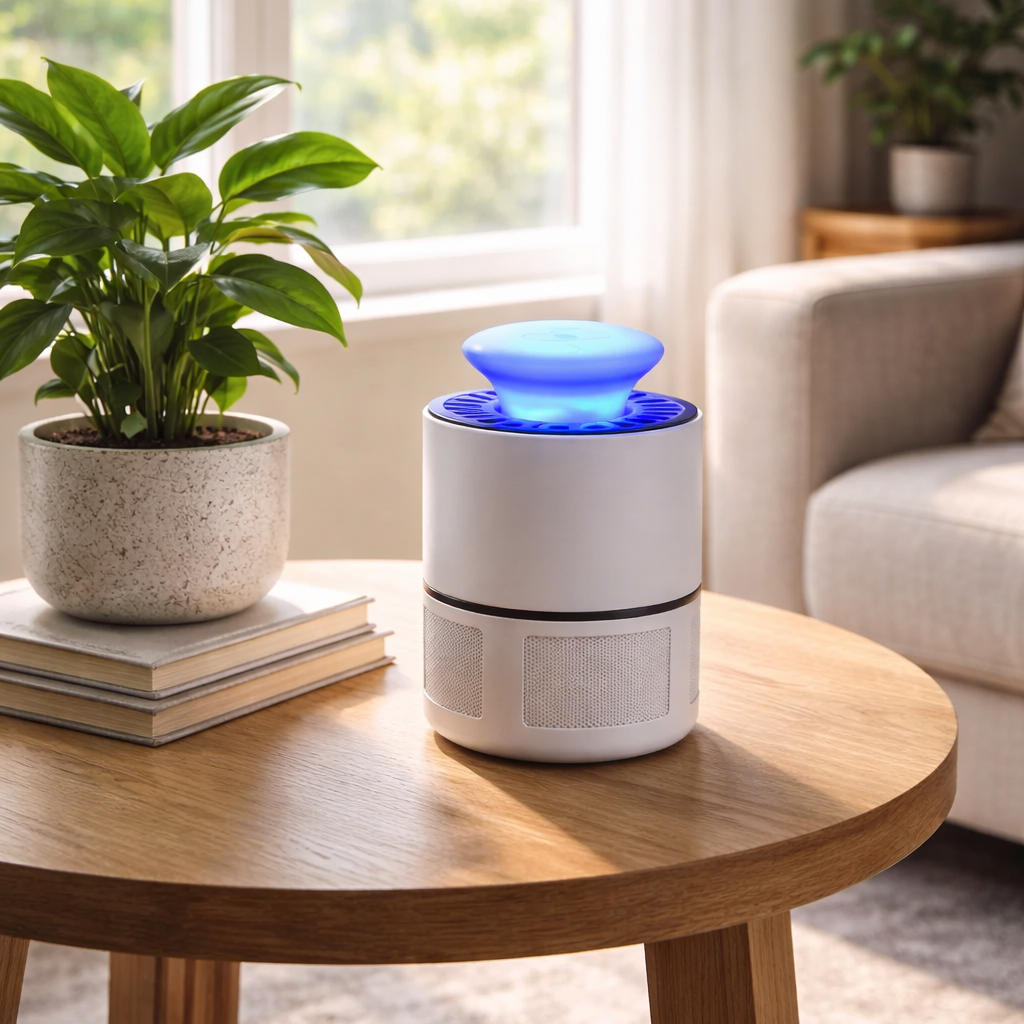 El MataMosquitos VixaLux atrae y captura mosquitos, sin químicos, sin olores y sin ruidos molestos.
